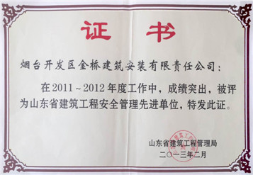 2013年山东省建筑工程安全管理先进单位