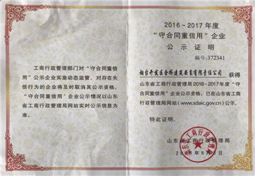 2018年山东省守合同重信用企业