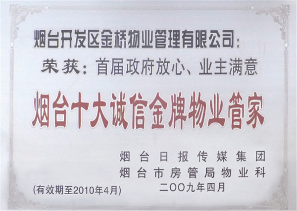 2009年烟台市十大诚信金牌物业管家